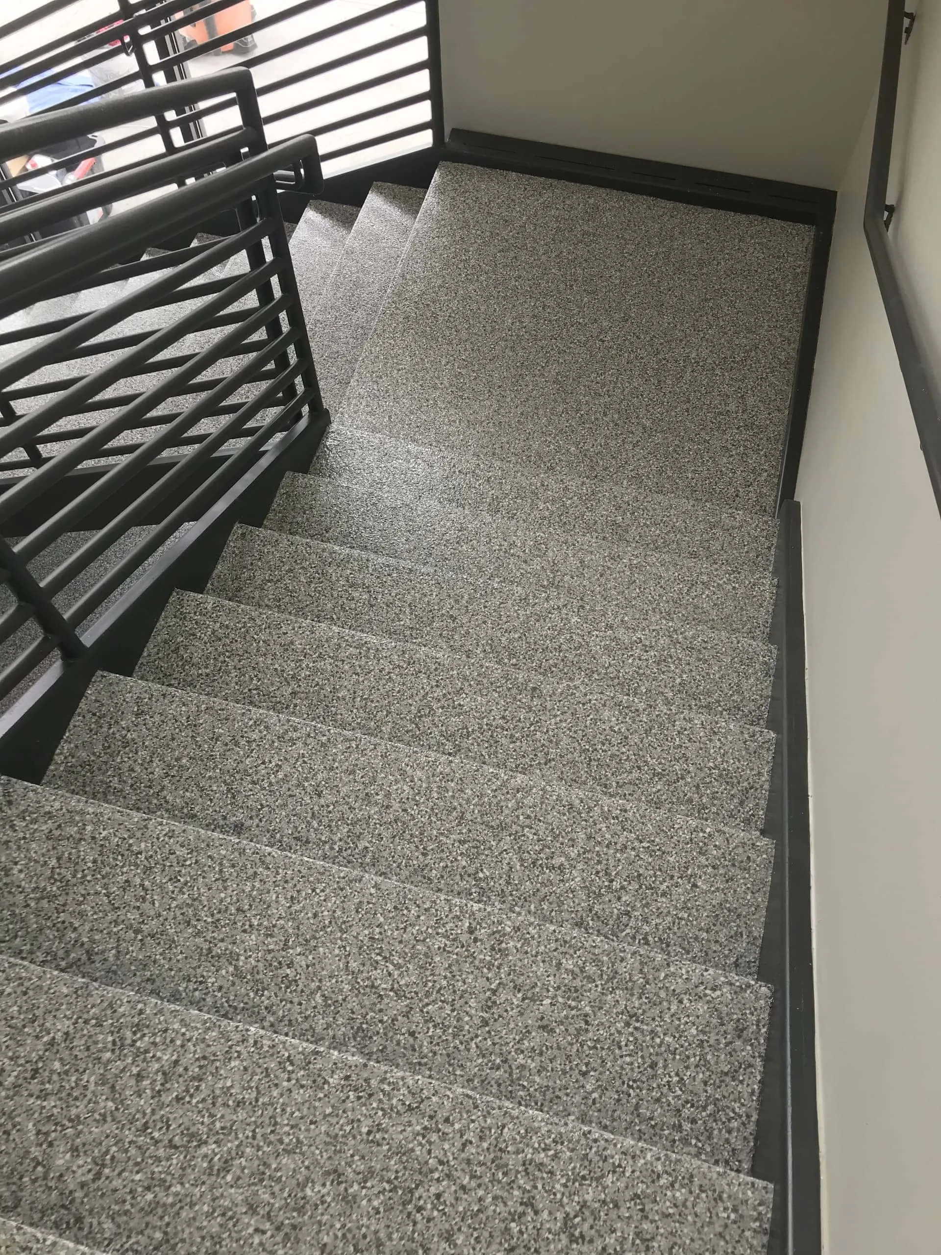 One of the other benefits is that it can help to create a safer workplace because it provides good traction with the addition of slip resistance – much better than plain cement – so employees are at a greatly reduced risk from slips and falls – which not only disrupts your business but can also cause valuable employees to become injured and set the stage for workers’ comp claims.